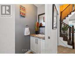 Welcome to this attractive freehold townhome in the family-friendly and highly sought-after Mount Hope community. Built in 2015, this home offers 3 spacious bedrooms, 2.5 bathrooms, and a bright open-concept layout perfect for modern living. The main floor features 9 ft ceilings, upgraded light fixtures, new flooring in the living room, a stylish white kitchen with stainless steel appliances, tile backsplash, and a separate dining area. Patio doors lead to a private backyard with a deck, ideal for relaxing or entertaining. A chic barn door opens to the upper-level laundry, while the primary bedroom boasts a large ensuite bath and plenty of space. The fully finished basement (2023) adds even more living space with a full bathroom, bedroom, storage/office area, under-stairs storage, and pot lights. Additional highlights include a newly renovated oak staircase with wrought iron spindles, a main floor powder room, inside garage access, and ample visitor parking. Conveniently located just minutes to Hwy 403, schools, parks, golf, restaurants, and more this home combines style, comfort, and convenience. (id:61594)