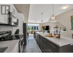 Step into modern lakeside living at this nearly 1,500 sq. ft. townhouse in the sought-after Grimsby-on-the-Lake community. This bright and stylish 2-bedroom, 2.5-bath home is designed for both comfort and function. The open-concept main floor features a sleek kitchen with granite countertops, a large island perfect for entertaining, and stainless steel appliances. The spacious living and dining area flows seamlessly to a private balconyan ideal spot to enjoy your morning coffee or unwind in the evening. Upstairs, youll find two generous bedrooms, including a primary with his & her closet space, plus a second full bathroom. With a practical layout, ample storage, in-suite laundry, and the convenience of exclusive parking right outside your front door, this home checks every box. Location is everythingset in a vibrant lakeside community, youre just steps from the waterfront trail, boutique shops, cafés, and restaurants. With quick access to the QEW, commuting to Niagara or the GTA is effortless. This property offers the perfect blend of modern comfort, low-maintenance living, and a connected lifestyle by the lake (id:61594)