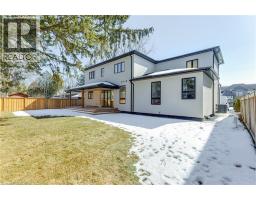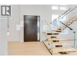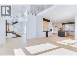 Welcome to this brand new, never-lived-in detached home in the highly desirable community of Ancaster, where thoughtful design, advanced technology, and luxury finishes come together to create an exceptional luxury living experience. Featuring 4+1 spacious bedrooms and 5 beautifully appointed bathrooms, this home offers the perfect blend of style, comfort, and functionality for modern family living and entertaining. The heart of the home is a show-stopping chef’s kitchen equipped with premium Miele appliances, a gas cooktop with pot filler, quartz countertops and backsplash, sleek cabinetry, under and upper cabinet lighting, and a built-in garburator. The expansive layout flows seamlessly into the bright living space highlighted by soaring 20-ft ceilings. The primary suite is a true retreat featuring a private balcony with wood flooring and glass railing, a luxurious spa-inspired ensuite with heated floors, and a custom closet organizer. Four bathrooms include heated floors, LED mirrors, and convenient electrical outlets beside each toilet. Designed with both elegance and practicality in mind, the home features 10-ft ceilings on the main floor, 9-ft ceilings on the second floor, 8-ft interior and entry doors, white oak 7.5” engineered hardwood flooring throughout, and illuminated interior staircases to the second floor and basement. The home is equipped with smart home technology, including Google Home integration with two iPads, controlling security cameras (6), lighting, switches, and garage door, along with a Nest thermostat for modern convenience. Exterior highlights include a front granite porch with glass railing, light strips along the driveway, walkway, and front steps, and exterior pot lights. The covered backyard deck features a wood ceiling with pot lights and gas line for a BBQ, overlooking a fully fenced yard with space for a future pool. Conveniently located close to parks, schools, shopping, and Highway 403. Taxes not assessed yet. (id:61594)