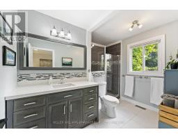 Welcome to this gorgeous family home nestled in the desirable Aurora Heights community. Perfectly located within walking distance to the Aurora Community Centre and just minutes from top-rated schools, shopping, and entertainment. This warm and inviting home features hardwood flooring, pot lights, crown moulding, and an open-concept design ideal for both everyday living and entertaining. Large windows throughout offer beautiful views of the treed surroundings, filling the space with natural light. The spacious kitchen is perfect for hosting, with direct access to the rear deck and adjacent family room. The family room exudes charm with a cozy gas fireplace with a floor-to-ceiling brick surround. The convenient main floor laundry room includes a side entrance and plenty of storage space. Upstairs, the large primary bedroom offers hardwood flooring, a custom floor-to-ceiling closet organizer, and a private three-piece ensuite with oversized porcelain tile flooring, a vanity with a stone countertop and a glass-enclosed shower. The additional bedrooms are generously sized perfect for a growing family. The fully finished lower level is made for entertaining, featuring a spacious recreation room with another brick-surround fireplace, a dedicated home office and an exercise room complete with laminate flooring and built-in speakers. Step outside to a private backyard oasis framed by mature trees and lush landscaping. This fully fenced yard includes a multi-level deck ideal for summer barbecues, relaxing in the sun, or entertaining guests. Enjoy garden beds filled with vibrant annuals and perennials that enhance the natural beauty of this space. Conveniently located near prestigious schools including St. Andrews College and St. Annes School, this home truly offers the best of family living in Aurora. (id:61594)