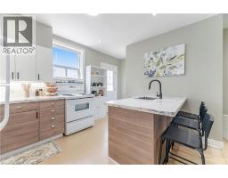 Welcome to 61 Stirton St a beautifully renovated Victorian-style home in the heart of Hamilton, where timeless character meets modern upgrades. This move-in ready 3-bedroom, 2-bathroom detached double-brick home offers a bright interior and a functional layout ideal for everyday living. The main level features 9-foot ceilings, fresh paint, and durable waterproof laminate flooring. The open-concept kitchen is designed for both function and entertaining, complete with a modern island, valance lighting, and new quartz countertops and backsplash, overlooking a private, fully fenced backyard. The yard was professionally regraded with exposed concrete and stamped borders, perfect for outdoor enjoyment. Additional features include LED pot lights, second-floor laundry, an enclosed front porch, and new Red Oak stairs. The finished attic adds versatile living space. Major updates include: roof shingles (2023), central A/C (2022), gas furnace (2023), full interior waterproofing with lifetime warranty (2022), exterior waterproofing (2022), updated windows, and lead pipe removal (2021). Includes one parking space. A fantastic opportunity in a central Hamilton location-don't miss it! (id:61594)