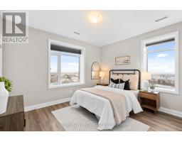 Indulge in refined condominium living crafted to deliver exceptional comfort and elevated luxury. This exceptional top-floor, corner suite offers 1,530 sq ft of beautifully designed living space (1,400 sq ft interior plus a 130 sq ft private balcony), with a layout that truly feels like a home. Featuring 3 bedrooms and 2 full bathrooms, this residence blends elegance, privacy, and outstanding value with low condo fees. Built by award-winning Howland Green at Bronte West Condominiums, this eco-conscious building is designed beyond Net Zero standards, showcasing geothermal heating and cooling and high-performance construction. Positioned at the end of the hall with no neighbours across, privacy is unmatched. The upgraded kitchen features ceiling-height cabinetry for a seamless, sophisticated finish. Automated blinds enhance the living room and primary bedroom, complemented by honeycomb blinds throughout. The upgraded laundry room includes a 2025 GE stackable washer (6.1 cu ft) and dryer (7.8 cu ft) with added storage. The primary bedroom offers a custom built-in closet, private ensuite, and direct access to the balcony. Bedroom two is enhanced with custom cabinetry and Safe & Sound insulated walls for added comfort and quiet. In-suite climate control ensures personalized comfort year-round. Walk out to the spacious private balcony, finished with outdoor floor tiles - an ideal extension of your living space, where you can also enjoy beautiful escarpment views. Ownership includes one locker and two side-by-side parking spaces - a rare and valuable offering. Residents enjoy premium amenities including a fitness centre, party/meeting room, visitor parking, and landscaped grounds. Ideally located near Milton District Hospital, parks, trails, shops, restaurants, and convenient access to Highway 401. A rare opportunity to experience modern luxury, eco-efficiency, and prime Milton living in one remarkable home. (id:61594)