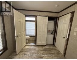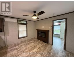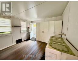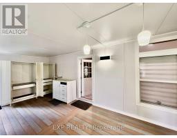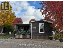 Located in 9 month section of award winning Happy Hills Resort. Gorgeous Custom Built 2021 Commodore Park Model with Additional Sunroom (16 x 42 and 12 x 20). 8ft ceilings throughout allow for extra large double hung windows and transoms. Zebra blinds on all. Eye catching composite deck with hard top coverage. Sunroom also has composite flooring with loads of added storage, 3 ft windows and pendant lighting. Open concept kitchen has new fully upgraded stainless steel appliances including a higher end gas stove with air fryer and grill, fridge with ice cube maker, a dishwasher, microwave and farm house sink. Solid oak cupboards, and pull out drawer storage including unique pull out storage in "dead space corner". Cupboards are pulled over the fridge and gabled. 3 Stage Home Filter System and higher particle filter for kitchen sink and ice maker. Electric Fireplace in the living room. Both bathrooms have granite vanities and marble flooring. Built in dressers and extra storage in the master bedroom. The laundry is located in the closet in the second bedroom. Both bedrooms fit king size beds. Cement pad and insulated spray foam under both modular and sunroom. 7 x7 shed with hydro. BBQ included on front deck and there is another composite deck off the back door. Lovely castor planters with Blue Spruce in front. A truly beautiful location with a large heated family swimming pool, children's splash pad, heated adult's only swimming pool, a 9 hole golf course and driving range, Bocce Ball, Lighted Tennis court, Pickleball, Volleyball, Basketball, Shuffleboard, Horseshoe pits, Daily children's crafts/activities, hayrides, bingos, movies, special tournaments, mini animal farm, hiking trails, several playgrounds, lighted skateboard and bicycle activity center and more. Get in on this lovely lifestyle early! Contact listing agent for fees, deposit and occupancy requirements. 15 minutes to the 401and 10 minutes to amenities. (id:61594)
