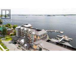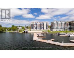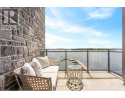 $933.28 MonthlyExperience exquisite waterfront living in this top-floor condo, perfectly positioned on the St.Lawrence River with panoramic views of the Thousand Islands. This one bedroom with den, one anda half bath beauty was custom designed in 2023 by Tanya Collins Design. Beautifully appointed,featuring soaring 10' ceilings and a chef's kitchen with superior finishes, including a gasrange with electric oven, Fisher & Paykel Range & Refrigerator, and Remote Blinds. Step outonto your private balcony, that will allow you to add a gas connection to BBQ - ideal forgrilling and entertaining, with stunning waterfront vistas. Enjoy five-star amenities includinga stylish party room, fitness center and meticulously landscaped grounds. Boating enthusiastswill appreciate the private dock slip in the marina offering seamless river access. Alsoincluded is one underground parking space and a storage locker. Just a short stroll to downtownGananoque's shops & restaurants, this is a rare blend of luxury, comfort, and location -trulywaterfront living at its best. (id:61594)