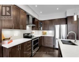 Better than new, and that's not just a saying. This Richcraft Addison end-unit offers 1,834 sq ft of thoughtfully upgraded living space, loaded with improvements from the ground up. No builder-grade shortcuts here. Every finish was either upgraded at build or improved since, and it shows in every room. The extended kitchen is the showstopper. A custom addition creates a bright breakfast nook flooded with natural light from extra windows. Quartz countertops, glass-front cabinetry, a glass chimney hood, pendant lighting over the island, a double sink with brushed stainless bar faucet, and hardwood flooring extending throughout make this a kitchen people stop and stare at. The rest of the home matches that same level of finish. Custom blinds on every window, upgraded light fixtures throughout, premium wood-look flooring in the bedrooms and hallway, a cozy fireplace with mantle, updated stair railings, and luxury vinyl plank in the finished basement rec room. Three bedrooms, 2.5 baths, and semi-recessed sinks in every bathroom. Outside is where this home truly shines. The backyard is a private oasis with cedar fencing, patio stones, an apple tree, two magnolia trees, evergreen shrubs, and perennial flowers in full bloom each season. The front is equally polished with river rocks, trees, shrubs, and perennials framing the home beautifully. With a new build, you wait years for the landscaping to mature and the finishes to feel intentional. Here, that work is already done. End unit means extra windows, extra light, and extra breathing room. This one has it all. (id:61594)