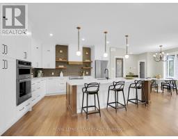 Situated in the desirable Orchard View Estates, this exceptional custom residence is set on a private 1.45 acre lot surrounded by mature trees, exquisite landscaping & beautifully maintained perennial gardens. Thoughtfully designed with timeless architecture and high-end finishes, this home offers refined living with serene outdoor spaces. The great room showcases a gas fireplace, custom built-in cabinetry with soapstone countertops, a wet bar complete with beverage refrigerator & ice maker along with automated blinds for added convenience. The gourmet kitchen features rich walnut accents, quartz countertops, stainless steel appliances and an oversized island - ideal for both everyday living & entertaining. The main level includes a private office and a formal dining room, offering both functionality and elegance. The luxurious primary suite provides a peaceful retreat with a gas fireplace, custom California Closet and spa-inspired ensuite bath featuring heated floors, double sinks, soaker tub and a heated towel rack. A private in-law suite with ensuite bath offers flexibility and can easily be converted back into two separate bedrooms. A spacious screened-in porch, completed in 2023, creates a wonderful gathering space overlooking the fully fenced yard-perfect for children or pets. The finished lower level includes a family room, games and exercise area, additional bedroom, full bath and a beautiful laundry room with heated floors & kitchenette with custom built-in fridge. Recent updates include a furnace (2023), air conditioning (2023), Generac whole-home generator (2023), dual sump pumps (2024), and a water treatment system (2024). Additional highlights include an oversized three-car garage and 200-amp electrical service. This home truly reflects pride of ownership - immaculately maintained, exceptionally clean and beautifully presented. It shows 10/10 and is sure to impress even your most discerning clients. (id:61594)