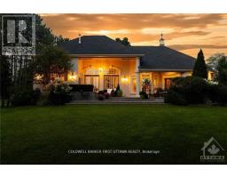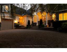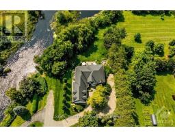 Experience unparalleled luxury in this meticulously designed home, just 15 minutes from Kanata, Stittsville and Manoticks central amenities. Nestled on a mature lot backing onto serene parkland and a gentle river, this estate boasts a picturesque courtyard with a sweeping driveway and weeping willow. Entertain effortlessly in the expansive great room with coffered ceilings and stunning hardwood, flowing seamlessly to multiple terraces. The sun-filled chef's kitchen overlooks a cozy family room and breakfast nook. Retreat to the primary suite with terrace access, a reading corner, custom fireplace, spa-like ensuite, and walk-in closet. The cohesive design extends from the upper-level guest suite with a coffee station to the lower level, featuring a games room, guest suite, fitness area, and workshop. Custom ICF construction, natural stone and stucco exterior, and top-of-the-line finishes make this home a rare find. (id:61594)