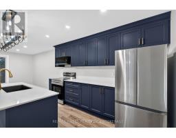 Welcome to this beautiful, professionally renovated semi-detached back-split home, tucked away on a quiet court in a family-friendly Kingston neighbourhood. Featuring 3 bedrooms and 2 full bathrooms, this home has been completely transformed from top to bottom with stylish finishes and all the big mechanical updates already taken care of, making it truly move-in ready. Enjoy peace of mind with a newer roof, furnace, and air conditioning, along with all new windows, doors, soffit, fascia, eavestroughs, lighting, and luxury vinyl plank flooring throughout. The two full bathrooms have been fully remodelled with ceramic tile and modern finishes, offering spa-inspired comfort. The stunning brand new kitchen is the heart of the home, showcasing modern blue cabinetry accented with gold hardware and faucet, plus brand new built-in appliances for a sleek, high-end look. The thoughtful design extends into the bright lower level, where you'll find a comfortable rec room, a full bathroom, and a walk-out to the patio and fenced backyard, perfect for entertaining or relaxing outdoors. Offered well below market value to sell fast with a quick close, this is a rare opportunity to secure a fully renovated home with no work left to do. Ideal for first-time buyers, downsizers, or investors looking for a turnkey property. (id:61594)