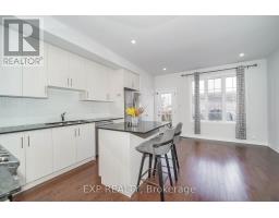 This beautifully townhouse is perfectly situated in a quiet, high-demand neighborhood. Featuring 3 bedrooms and 4.5 bathrooms, this home offers a bright, functional layout ideal for modern family living. The main floor boasts soaring 9-foot ceilings, hardwood flooring, pot lights throughout, and an open-concept kitchen with a striking quartz countertop, center island with LED accent lighting and gas stove designed for both style and functionality. a stained oak staircase leads to the second level, where you will find a warm and inviting family room, a convenient laundry room with a built-in laundry chute, and a spacious primary suite. The third floor offers two additional bedrooms, each with its own private ensuite bathroom and walk-in closet, perfect for family members or guests. The basement also features 9-foot ceilings and large windows, offering a spacious , unfinished space ready for your personal touch. Conveniently located near community centers, top-ranked schools, and Hwy 407. A rare opportunity to own a thoughtfully designed home in one of the areas most desirable communities. Freehold and no potl (id:61594)
