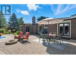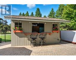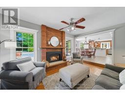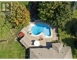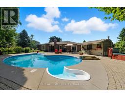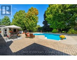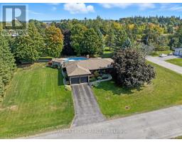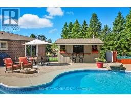 This beautiful all-brick bungalow offers over 3,000 sq. ft. of finished living space on a rare, in town treed 0.63-acre lot that provides both privacy and charm in one of Port Perrys most desirable mature neighbourhoods. Perfectly located on a quiet cul-de-sac within walking distance to historical down town, schools, shopping, parks, the waterfront and the marina. This home combines convenience with lifestyle. A large inviting front porch welcomes you with charm and curb appeal. The bright, open-concept main floor features a custom kitchen with abundant cabinetry, built-in stainless steel appliances, double and prep sinks, and a breakfast bar. It flows seamlessly into a spacious dining room with a walkout to the pool and a sunken family room overlooking the backyard, complete with a cozy gas fireplace. A generously sized separate living room with a large front-facing window adds extra space for family gatherings or quiet relaxation. Three bedrooms and two full bathrooms, including a primary suite with ensuite bath and direct walkout to the pool area plus a main floor laundry complete the main floor. The fully finished basement expands the living space with a large rec room featuring a pool table, a sitting area with a natural gas fireplace, a wet bar, a separate gym area, plenty of storage, an additional bedroom, and a 3-piece bath and a new walk in closet for extra wardrobe or storage space. A convenient side entrance through the garage leads directly to the basement. The backyard is an entertainer's dream and true private oasis. Highlights include a 36-ft humpback pool with two swim-outs, a rock-style diving board with waterfall, a brand-new liner (2024), and hot tub. The 8x16 Western Red Cedar cabana features a 2-piece bathroom, an additional sink, natural gas hookup, and a second gas hook up for the BBQ. The pool area is secured with wrought iron fencing, while a separate garden shed with hydro provides extra storage. Large lot with no sidewalks. (id:61594)