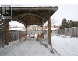 Ideal detached starter home backing onto scenic trails! This almost 1,500 sq ft home offers a 1.5-car garage and 2-car driveway parking. Updated kitchen with granite countertops and two breakfast bars, plus walk-out to a custom deck and pergola-perfect for entertaining. Finished basement with a 3-piece washroom. Newer engineered hardwood flooring throughout the second floor. Spacious primary bedroom with ensuite and walk-in closet. Includes storage shed and gas BBQ hookup. (id:61594)