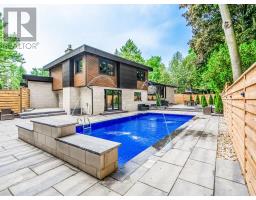 A modern and luxurious five-bedroom family home situated in an exclusive and quaint community of South Mississauga high above the Credit Valley and PGA tour-famous Mississauga Golf & Country Club. A stunning mid-century modern-inspired abode where Functionality, Luxury and Contemporary design meet in perfect harmony. A trophy residence for those who seek Magazine-worthy design and quality craftsmanship. Loaded with tasteful features and accents.Soaring vaulted ceilings, White Oak Hardwood and Porcelain tile floors, Italian Onyx countertops and High-end appliances, Walnut cabinetry, integrated lighting features, built-in sound system, to name a few. Large Domex triple-pane thermal efficient windows and doors with safety glass, multi-point locking, and security camera system. Multiple walk-outs to allow an indoor-outdoor lifestyle. Enjoy the completely reimagined backyard landscaped with gorgeous stone and lighting features, a new in ground pool and cabana. Truly an entertainers delight! (id:61594)