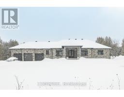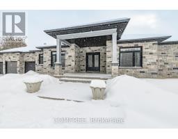 Welcome to an extraordinary executive stone-front estate bungalow with rear stucco, offering refined luxury, exceptional privacy, and timeless family comfort. Nestled at the end of a quiet dead-end street in prestigious Greely, this remarkable property enjoys no through traffic and no nearby neighbours, creating a serene, secure, and truly private country retreat. Set on a pristine, open, and highly visible 2.3-acre estate lot, this meticulously maintained 2,500 sq ft residence showcases quality craftsmanship and elegant exterior finishes. A stately U-shaped driveway enhances curb appeal while providing easy access, ample parking, and a grand sense of arrival. The home features a striking stone façade at the front, complemented by clean, modern rear stucco, creating a sophisticated and timeless exterior design. The main level has been thoughtfully designed for both luxury and livability, featuring three expansive bedrooms and three full bathrooms, with each bedroom offering its own private ensuite and dual closets. The primary suite is a true private sanctuary, highlighted by an impressive 14-foot floor-to-ceiling, Boutique style. custom cabinet closet. Entertain effortlessly in the separate enclosed dining room, perfectly suited for formal dinners, celebrations, or easily converted into a sophisticated home office or executive study. The partially finished lower level offers outstanding flexibility and is enhanced by large egress windows. Complete with a full bathroom, this level is ideal for a luxury recreation room, guest suite, or future expanded living space. Car enthusiasts and hobbyists will appreciate the exceptional 28' x 38' three-car garage, offering ample room for vehicles, storage, and a dedicated workshop. This one-of-a-kind executive estate offers the perfect balance of upscale living and unmatched privacy. A rare opportunity to own a private luxury retreat in one of Greely's most desirable and exclusive settings. (id:61594)