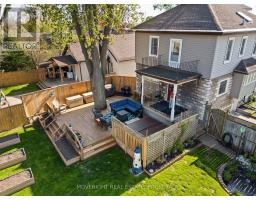 Welcome to 6280 Dawlish Avenue, a charming and meticulously maintained 2 story home located in the heart of Niagara Falls. Nestled on a spacious corner lot, this 4 bedroom, 2 bathroom home offers 1,618 sq ft of beautifully finished living space, complemented by impeccable landscaping, two private driveways, and a detached garage. Step onto the inviting front porch the perfect spot to enjoy your morning coffee before entering a welcoming foyer rich with timeless charm. Inside, gleaming hardwood floors, elegant neutral tones, and detailed wood trim create a warm and inviting atmosphere, while the beautifully crafted staircase and stained-glass windows add a touch of classic character. The bright and stylish kitchen boasts a chic two-tone design with white uppers, rich blue lowers, warm butcher block counters, and a subway tile backsplash, all anchored by a large window that fills the space with natural light. The cozy living and dining rooms are ideal for gathering with family or hosting guests. Upstairs, all four bedrooms are located on the second floor, including one currently used as an office with a walkout to a private balcony perfect for enjoying serene views of the backyard and neighbourhood. A recently updated 3-piece bathroom serves this level, while a staircase leads to the third floor, offering endless potential as a playroom or additional living space. The finished basement features a cozy family room with a natural gas fireplace, a large utility/storage room, and a spacious 4-piece bathroom with laundry. Outdoors, the fully fenced backyard is a private retreat with lush gardens, a tranquil fishpond, and a large deck complete with a built-in hot tub ideal for entertaining or relaxing. Located in a quiet, family-friendly neighbourhood close to schools, parks, Lundy's Lane shopping, easy QEW access and just minutes from the vibrant attractions of Niagara Falls. Schedule your private showing today! (id:61594)