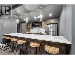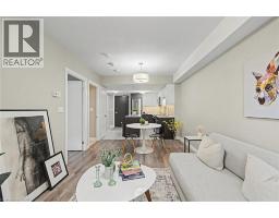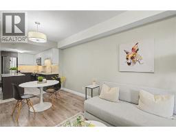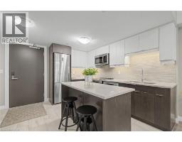 The Studio at 63 Arthur Street South - it's not just a condo, it's a lifestyle. Located in the highly sought-after Metalworks community in Downtown Guelph, this bright, beautifully finished 1-bedroom, 1-bathroom suite offers turnkey urban living ideal for empty nesters, downsizers, and first-time buyers seeking comfort, style, and low-maintenance convenience. A standout feature of this suite is the owned underground parking space with two bike racks and owned underground storage locker - a highly desirable combination for buyers who value convenience, security, and practical downtown living. Inside, expansive windows fill the space with natural light, while the contemporary kitchen features quartz countertops, stainless-steel appliances, and a spacious island with abundant storage. The open-concept living and dining area extends to a private terrace-level patio overlooking the courtyard, perfect for morning coffee, relaxing outdoors, or easy entertaining. The terrace-level location offers added appeal, with easy access to the party rooms and guest suites, plus convenient weather-protected access to building amenities through the underground parking area. The bedroom offers generous closet space, while the full bathroom and in-suite laundry add everyday comfort and functionality. Residents enjoy an impressive selection of amenities, including a fully equipped fitness centre, party rooms with full kitchens, lounges, the Copper Club speakeasy-style lounge, landscaped courtyards with BBQs and fire pits, a bocce ball court, guest suites, a pet spa, concierge service, secure entry, underground visitor parking, and wheelchair-accessible features. Just steps from restaurants, cafés, shops, markets, nightlife, River Run Centre, Speed River trails, transit, and the University of Guelph, this home offers the perfect blend of downtown energy and everyday ease. Built in 2019, The Metalworks blends modern design with historic character in one of Guelph's most desirable addresses (id:61594)