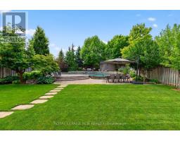 RARE Opportunity: Fully Renovated 5+1 Bedroom Executive 2-Storey with custom designer addition, 4 season sunroom, spectacular dream kitchen, finished basement and resort-style private backyard oasis on prestigious Campbell Drive within in steps to all amenities and amazing trails. Enjoy an open-concept layout featuring wide-plank hardwood flooring, decorative wood beams, custom cabinetry, artistic wood decorative accents, pot lights & B/I speakers. Unbelievable entertainer's dream kitchen with stunning cabinetry, quartz and walnut countertops, centre island plus breakfast bar, huge walk-in pantry with chef's desk & window, premium stainless steel appliances, dining area with beamed ceiling and walk-out to sunroom. Relax in the 4 season sun room with 2-sided ledge rock gas fireplace, cedar walls and ceiling, flagstone flooring, and electric heaters. The Family room is open to the kitchen with 2-sided fireplace, and hardwood flooring. Working is a productive in the perfectly located office with soaring 11'10'' ceilings and built in double workstations. Doing Laundry is a pleasure in the modern laundry/mudroom with barn door and B/I shelving. Escape to the spacious Primary Suite with stone gas fireplace, custom wood B/I shelving, coffered ceiling, huge 4-piece spa style ensuite with makeup table, his and her sinks, glass shower and oversized custom walk-in closet. The four additional generously sized bedrooms with B/I shelving closets provide ample family space. The Professionally finished basement offers a rec room, exercise room, playroom, 6th bedroom and 3 piece bathroom. The garage presents B/I storage, epoxy flooring and 7 bike pulley system. Live the vacation lifestyle in the private, lusciously landscaped backyard with shotcrete negative edge pool with waterfall and wadding area, hot tub, pool house with 2 piece bath, Dekko fire feature, raised hidden garden beds and green grassy areas. Yes have it all, Location! Vacation! and Designer Luxury! (id:61594)