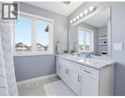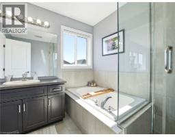 Stunning 4 bed, 3 bath detached home built only in 2020 by reputable John Bruce Homes! Offering ~2,000 sq. ft. of above grade living space with tasteful finishes designed for modern family living. From the moment you arrive, the home impresses with its upgraded elevation featuring contemporary stucco and stone finishes, a new asphalt driveway with interlocking stone and exceptional curb appeal. Step inside to discover an open and spacious main floor, abundant in natural light with 9-ft ceilings, engineered hardwood flooring, and pot lights throughout - creating a warm and inviting atmosphere. The living room is the perfect place to gather, highlighted by a cozy gas-powered fireplace. The well-appointed kitchen blends style and function with upgraded floor tiles, corner cabinetry with cupboard valences, an over-the-range microwave, ample counter space and a convenient breakfast bar ideal for casual dining or entertaining. Upstairs, you will find four generously sized bedrooms; three feature walk-in closets for exceptional storage. Two full bathrooms, including a 4-pce main bathroom and a spacious 4-pce primary ensuite with a relaxing soaker tub and a glass shower, create the perfect retreat at the end of the day. Added convenience of upstairs laundry. The unspoiled basement with upgraded windows offers endless potential and awaits your finishing touches. Outside, enjoy a large fully fenced backyard perfect for entertaining, family gatherings, or relaxing evenings outdoors. Situated on one of the best streets to live on in Binbrook, this home is located in a peaceful, family-friendly neighbourhood just minutes from schools, parks, and shopping, making it an exceptional opportunity you won’t want to miss! (id:61594)