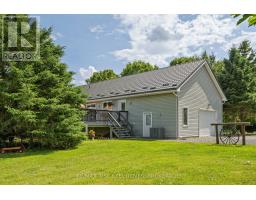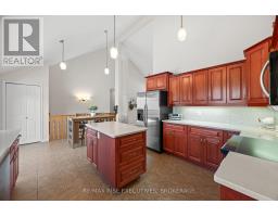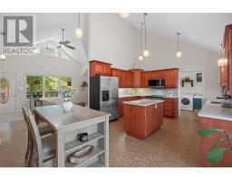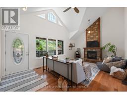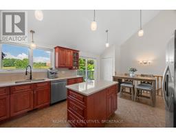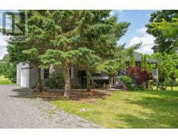 This is country living, elevated. Step inside from the large covered front porch and you're immediately welcomed by soaring cathedral ceilings and a striking propane fireplace that stretches all the way to the peak. The heart of the home flows into a custom kitchen complete with quartz countertops, endless storage, and more prep space than you'll know what to do with plus a convenient main-floor laundry room tucked just off the kitchen. The primary suite is a true retreat, with double doors leading to a spa-like ensuite featuring a walk-in shower with sleek glass surround. You'll also find two additional large bedrooms overlooking peaceful fields and mature trees the kind of view that instantly grounds you. And the updates? They're already done. The home features brand new architectural metal shingles (September 2024), a new hot water tank, and several new windows offering both peace of mind and lasting curb appeal. It doesn't stop there! The garage and basement are heated with in-floor radiant heat, offering year-round comfort and functionality. On the lower level, you'll find a second large bedroom with its own ensuite, a movie room, and a huge flex space with built in book shelves, a walkout to a private deck perfect for guests, multi-generational living, or whatever your lifestyle needs. No updates needed just unpack and enjoy. All of this is set on a picturesque one-acre lot, complete with a charming bridge over a natural creek. Just minutes from Westport's shops, restaurants, and lakeside charm, and mere steps to the golf course, book your showing and make this incredible home yours today. (id:61594)