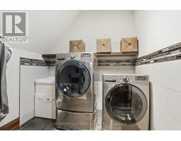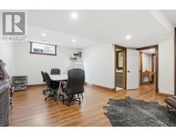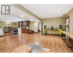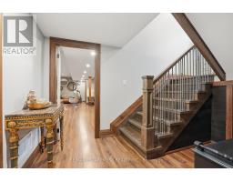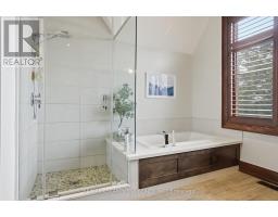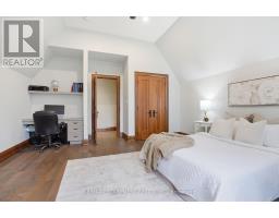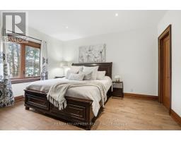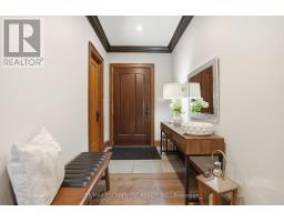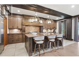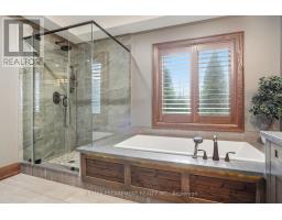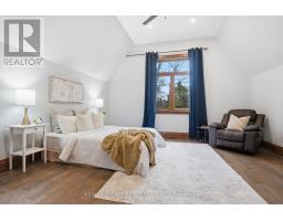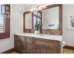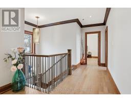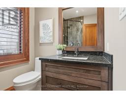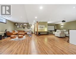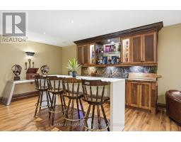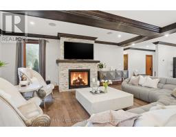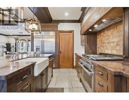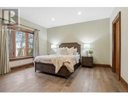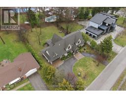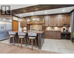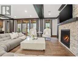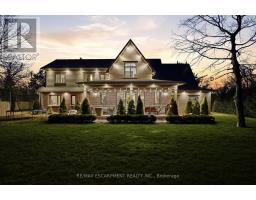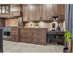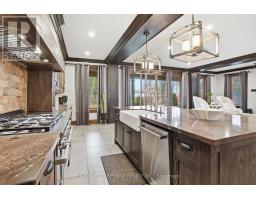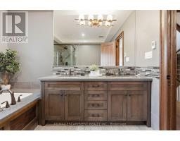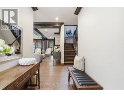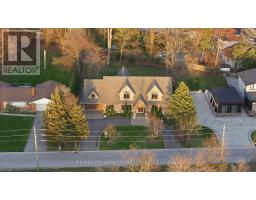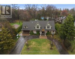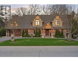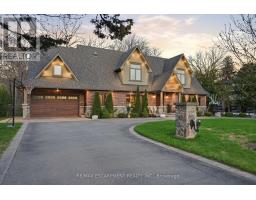 Timeless design and exceptional functionality define this beautifully finished home set on a landscaped lot with a circular driveway and strong curb appeal. A classic blend of red brick, natural stone, and shingle-style detailing creates an elegant exterior, complemented by a covered front porch and mature greenery for added privacy. Inside, rich hardwood flooring, detailed millwork, and warm, natural finishes create a refined yet inviting atmosphere. The main living spaces balance openness with defined areas for everyday living and entertaining. The kitchen anchors the home with custom wood cabinetry, stone countertops, and a large centre island with seating and prep space. Premium appliances include a KitchenAid fridge, KitchenAid dishwasher, and a DSC Fisher & Paykel 6-burner range with grill. The space flows seamlessly into the dining and living areas. The dining room features wood beam detailing, custom shutters, and statement lighting, while the living room is centered around a floor-to-ceiling stone fireplace. Upstairs, well-appointed bedrooms offer comfort and flexibility. The primary suite includes a walk-in closet and private ensuite with double vanity and modern finishes. Additional bedrooms are bright and supported by a full main bath with soaker tub and glass shower. The fully finished lower level adds heated floors, a home theatre area, custom wet bar, and flexible living space, along with an additional bedroom and bathroom. Additional features include a tiled mudroom with garage access, laundry room, cold room, and utility space. Recipient of the prestigious Griswold Award in 2021 and again in 2024. LUXURY CERTIFIED (id:61594)