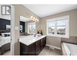 OPEN HOUSE Sun April 12, 2-4PM. Welcome to this meticulously cared-for Energy Star move-in ready 3 bedroom, 2.5 bath semi-detached Tartan home with over 1800 sq ft of finished space on all levels in sought-after Emerald Meadows, situated within walking distance to shopping, restaurants, amenities, and near the Trans-Canada Trail! With great curb appeal, this home features updated interlock providing added parking, a front door w/ glass detail, and the bonus of siding onto a walkway. Step inside to a welcoming tiled foyer with high ceiling and board & batten detail. A convenient powder room is located off the entrance, leading into the open-concept main level with hardwood floors, perfect for everyday living and entertaining. The kitchen showcases updated quartz countertops (2024), deep sink w/ black Moen faucet, SS appliances, subway tile backsplash, ample cabinetry, and a functional island with seating for 3. The layout flows into a bright dining area and living room w/ large windows and sliding door access to the backyard. Upstairs, the primary bedroom offers a large WIC and spa-inspired ensuite featuring an oversized glass shower w/ built-in seating, relaxing soaker tub and an updated quartz countertop complete w/ a Moen faucet. 2 additional bedrooms and a full bath w/ tub/shower combo and updated quartz countertop and Moen faucet complete the level. The finished LL adds even more living space, offering a cozy rec room w/ large window and gas FP, perfect for movie nights, plus a utility space w/ rough-in and laundry room. Step outside to a spacious fully fenced backyard w/ a generous 17' x 17' interlock patio provides the perfect setting for dining and gatherings, while the surrounding green space offers added privacy. This pet-free home has been well maintained w/ vents & ducts cleaned (2024) and regular servicing of furnace, A/C, and FP. Don't miss your chance to own this exceptional home in an unbeatable location! 24 Hours Irrevocable on all offers preferred. (id:61594)
