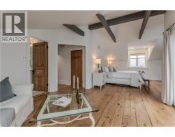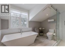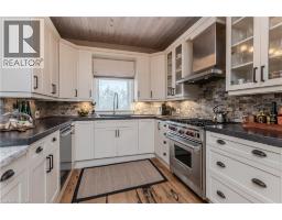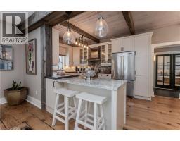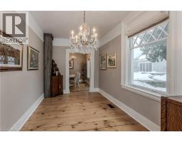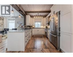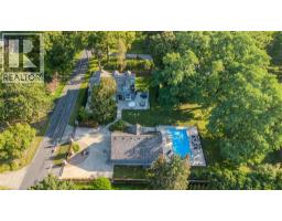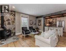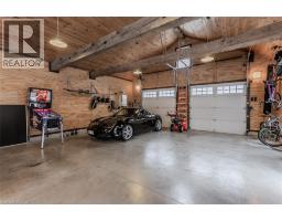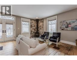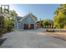 Discover the perfect blend of rural charm and refined luxury on an exceptional property that offers the tranquility of country living while remaining just mins from Burlington’s everyday amenities, schools, shopping, and hwys. Set behind automated wrought iron gates is one of the most historic homes in the area originally from 1875. Inside, rustic character meets modern comfort. A welcoming foyer with heated floors sets the tone, while beautiful 1875 wood floors (2020), 8” baseboards, and designer lighting add warmth throughout. The heart of the home is the kitchen featuring concrete countertops, custom cabinetry, SS appliances, wood beam accents, tile backsplash, and a breakfast bar, seamlessly connecting to a bright breakfast area with a bay window. Multiple gathering spaces offer flexibility for living and entertaining, including a family room with stone-surround fireplace, formal dining room, and a living room with wood paneling, French doors, and a bay window. A main-floor bedroom and beautifully renovated 3pc bath with heated floors and glass shower provide ideal space for guests or multigenerational living. Upstairs, the expansive primary retreat impresses with vaulted 12’ ceilings, automated blinds, private balcony, and a custom California Closets walk-in. The spa-inspired ensuite features a freestanding tub, and glass walk-in shower. 2 additional spacious bedrooms and a stylish 4pc bath complete the level. The heated garage is a dream entertainment space, and offers polished concrete floors, automated blinds, and an EV charger rough-in. The partially renovated lower level provides excellent storage, laundry with new machines, a workbench, and walkout cellar doors. Outdoors, the fully fenced backyard is a true private retreat with a professionally landscaped stone patio, flagstone pathways, inground pool, hot tub, fire pit, and large shed—perfect for family gatherings, summer entertaining, and peaceful evenings under the stars. (id:61594)