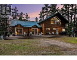 Welcome to 631 Golden Lyn Way! This stunning 4-bedroom, 2-bathroom all-season custom-built residence is located right on the waterfront of the beautiful Golden Lake. Meticulously upgraded and well-maintained, this property offers a true cottage feel without compromising on luxury amenities, comfort, and well-thought-out details. Stepping into the home, you will notice the welcoming feel, hardwood flooring, cathedral ceilings, and big windows that flood the space with natural light. The spacious kitchen offers a convenient breakfast bar, plenty of counter space & cabinets for storage - perfect for hosting & entertaining. The open-concept living & dining area is the true heart of the home, featuring a grand stone fireplace that serves as the main heat source of the residence - the perfect gathering space to enjoy cozy evenings by the fire. A spacious entry, large primary bedroom, guest bedroom, office space & 4-piece bath round out the main level. Upstairs, the loft offers extra space, with views of the lake & forest. On the lower level, you will find a recreation area, 3-piece bathroom w. a free-standing bathtub, two bedrooms, a dedicated laundry room & plenty of space for storage. All bedrooms in the home feature direct access to the outdoors - whether to the patio on the lower level or wraparound porch and deck on the main level - catching the morning sun while sipping your coffee, or views of the sunset in the evening are guaranteed. The property also features two private docks, a waterfront deck, bunkie with wood stove, boathouse, outdoor shower, outhouse w. sink & running water, detached oversized heated 1-car garage, and carport. Only a 20-minute drive away from Eganville, and a 45-minute drive to Pembroke, this is the perfect spot for those leading an active lifestyle, seeking privacy & serenity, who also enjoy the convenience of being close to amenities & vibrant town centres. Don't miss out on experiencing this fantastic turn-key opportunity for yourself! (id:61594)