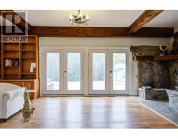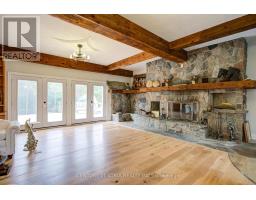 Discover unparalleled privacy and timeless charm at this custom-built sanctuary, nestled on nearly 12 lush acres in the heart of Rural Uxbridge. Set behind a private security gate, a tree-lined path leads you to a residence defined by sophisticated country living. The showstopping family room features soaring wooden beams and a floor-to-ceiling stone fireplace, with walkouts to a backyard oasis complete with a cascading waterfall, serene pond, and a built-in outdoor fireplace/pizza oven for magical evenings. Inside, find rare architectural gems like a sunken living room and a sprawling main floor offering endless potential. The primary and guest suites offer private walkouts to a flat-top terrace overlooking the forest-perfect for morning coffee. The finished basement features two separate exits and walkout sliding doors, providing seamless in-law capability and flow to the enchanting gardens. Heated efficiently with geothermal energy and located moments from the Trail Hub, Skyloft, and Wooden Sticks Golf, this property offers the ultimate blend of sustainability, tranquility, and convenience. (id:61594)