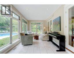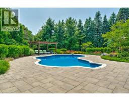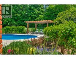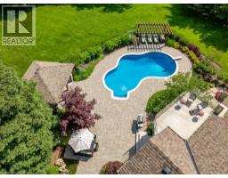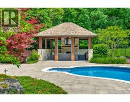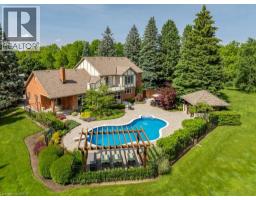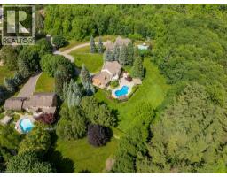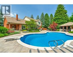 Welcome to 6365 Breckenridge Place – your dream country retreat nestled on 2.5 picturesque acres in prestigious Kilbride. Premium location at the end of a quiet court backing on a peaceful ravine, part of a path free portion of the Bruce Trail. This serene and beautifully landscaped property offers a tranquil lifestyle with sweeping lawns, manicured gardens, an in-ground heated pool and a charming screened-in gazebo complete with a gas fireplace, TV and ceiling fan – ideal for year-round outdoor entertaining. The custom pergola offers the perfect place to lounge next to the pool. Built by well known Branthaven Homes, this truly one-of-a-kind residence boasts approximately 3,400 sq ft of thoughtfully designed living space with Craftsman-inspired details. Highlights on the main floor include a generous kitchen with solid maple cabinetry, an expansive island, stunning Cambria quartz countertops and heated travertine floors. The kitchen opens to a cozy solarium that steps out into the idyllic backyard and a family room that features a unique slate, copper, and maple fireplace. A custom library with wall-to-wall built-ins provides an ideal home office or reading retreat, and elegant formal living and dining rooms are perfect for entertaining. Upstairs are four well-proportioned bedrooms, including one with French doors that open to a second-floor deck which overlooks the pool and expansive green space. The main bedroom features his and hers walk-in closets and a spa-like ensuite. Additional highlights include a large three-car garage, 10,000-gallon cistern, an in-ground sprinkler system, an extra-long driveway, and a huge unfinished basement offering tons of storage and endless possibilities. All this, just minutes from scenic hiking trails, top-rated golf courses, and the natural beauty of the surrounding countryside. (id:61594)