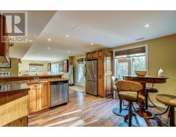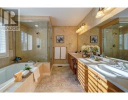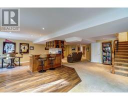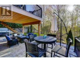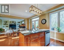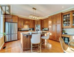 Set in one of Uxbridge's most coveted golf course communities, this exceptional executive home blends luxury, lifestyle, and an unbeatable location. It backs onto lush green space & forest, with direct access to scenic trails and within walking distance to shops, schools, and town amenities. Upon entry, the main floor impresses with 9' ceilings and crown mouldings throughout with a dramatic 2-storey foyer open to the upper level. The living room features large bow windows and California shutters; the formal dining room is accented with a coffered ceiling & pillar columns. The open concept gourmet kitchen offers custom cabinetry, granite counters, a tumbled marble backsplash, s/s appliances with counter cooktop, built-in oven, microwave & warming drawer, hardwood floors, and a 3-sided gas fireplace connecting to the family room featuring custom built-ins. Double garden doors with a retractable screen leads to a large deck with forest views. Upstairs, the primary suite includes double entry doors, a walk-in custom closet, & a 5-pc ensuite with a Jacuzzi tub. Two bedrooms share a Jack & Jill 4-pc bath, while the fourth offers its own ensuite, bay windows with a vaulted ceiling & built-in desk area. The bright, walkout basement includes oversized windows, a kitchenette with custom cabinetry, an eating area, dishwasher, sink, and fridge; plus a rec room and play area perfect for in-laws and extended family. The playroom features a large above-grade window and could easily be converted into an additional bedroom (by adding one wall) offering excellent potential for a full in-law suite conversion. Walk out to a covered patio and professionally landscaped backyard with a sprinkler system, hot tub, deck with lighting, and mature gardens. Additional features include: Nest thermostat + doorbell, privacy fencing with gate access, 2018 furnace & AC, 2017 shingles, 200 amp service, water softener(owned) & a professionally landscaped front yard with sprinkler system. (id:61594)