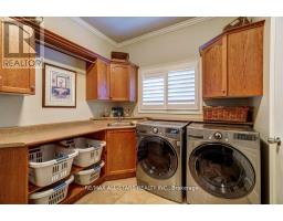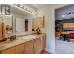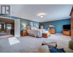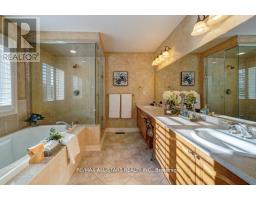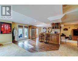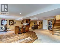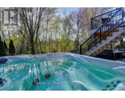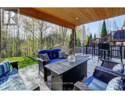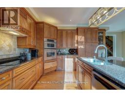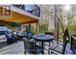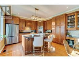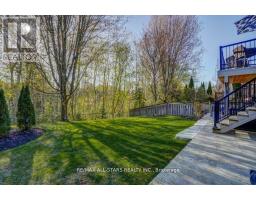 Set in one of Uxbridge's most coveted golf course communities, this exceptional 3-car garage executive home blends luxury, lifestyle, and an unbeatable location. It backs onto lush green space & forest, with direct access to scenic trails and within walking distance to shops, schools, and town amenities. Upon entry, the main floor impresses with 9' ceilings and crown mouldings throughout with a dramatic 2-storey foyer open to the upper level. The living room features large bow windows and California shutters; the formal dining room is accented with a coffered ceiling & pillar columns. The open concept gourmet kitchen offers custom cabinetry, granite counters, a tumbled marble backsplash, s/s appliances with counter cooktop, built-in oven, microwave & warming drawer, hardwood floors, and a 3-sided gas fireplace connecting to the family room featuring custom built-ins. Double garden doors with a retractable screen leads to a large deck with forest views. Upstairs, the primary suite includes double entry doors, a walk-in custom closet, & a 5-pc ensuite with a Jacuzzi tub. Two bedrooms share a Jack & Jill 4-pc bath, while the fourth offers its own ensuite, bay windows with a vaulted ceiling & built-in desk area. The bright, walkout basement includes oversized windows, a kitchenette with custom cabinetry, an eating area, dishwasher, sink, and fridge; plus a rec room and play area perfect for in-laws and extended family. The playroom features a large above-grade window and could easily be converted into an additional bedroom (by adding one wall) offering excellent potential for a full in-law suite conversion. Walk out to a covered patio and professionally landscaped backyard with a sprinkler system, hot tub, deck with lighting, and mature gardens. Additional features include: Nest thermostat + doorbell, privacy fencing with gate access, 2018 furnace & AC, 2017 shingles, 200 amp service, water softener(owned) & a professionally landscaped front yard with sprinkler system. (id:61594)