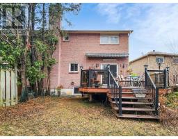 Bright and spacious 3+1 bedroom home in a prime, highly desirable Thornhill location, offering over 1,500 sq ft of thoughtfully designed living space. A charming front patio provides a warm welcome into the home, where beautiful hardwood flooring flows throughout the main level. An inviting foyer leads to a large, sun-filled living and family room combined with the dining area, which offers direct access to a stunning oversized outdoor deck-perfect for entertaining and relaxing. The modern kitchen features stainless steel appliances, granite countertops, ceramic flooring, and sleek finishes, ideal for everyday living and hosting. The second floor showcases a newly renovated staircase and contemporary flooring, along with three generously sized bedrooms featuring large windows that fill the space with natural light. The primary suite offers a spacious walk-in closet and a well-appointed 3-piece ensuite. The finished basement includes above-grade windows, providing plenty of natural light, a cozy wood-burning fireplace, and an additional bedroom with a 3-piece ensuite, complete with a spa-like jacuzzi tub. Situated in a sought-after neighbourhood close to top-rated schools, community centres, libraries, public transit, shopping, restaurants, and more, this home offers comfort, style, and convenience in an unbeatable location. (id:61594)