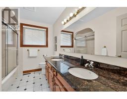 Nestled in the heart of Ancaster's prestigious and rarely available Clearview Estates, this custom-built five-bedroom home offers an exceptional blend of elegance, space, and timeless craftsmanship. Set behind a rich brick and stone exterior, the home welcomes you with a grand foyer featuring soaring ceilings, abundant natural light, a sweeping curved staircase, and polished marble floors. The main floor includes a private office with custom built-ins, a formal living room, and a spacious dining area with rich hardwood flooring, perfect for hosting gatherings. At the heart of the home is a chefs kitchen with granite countertops, premium stainless-steel appliances, and direct access to a serene, ultra-private backyard with a pergola covered patio, ideal for entertaining or relaxing. A warm family room with built-ins and a wood-burning fireplace, a two-piece powder room, and main-floor laundry complete the level. Upstairs, the luxurious primary suite features dual walk-in closets and an ensuite with a jacuzzi tub and walk-in shower. Four additional bedrooms offer generous space, served by a beautifully appointed five-piece main bath. One bedroom includes rough-in for a future ensuite. The expansive lower level awaits your personal touch. A rare opportunity to live in one of Ancasters finest enclaves. RSA. (id:61594)