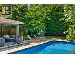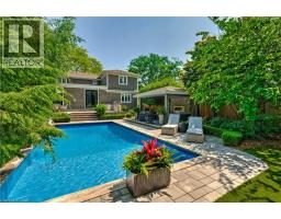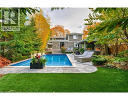 Curb appeal that captivates, & a backyard sanctuary you'll never want to leave! Welcome to one of Burlington's most sought-after neighborhoods, where this stunning 4+1 bedroom, 3.5 bathroom residence offers exceptional living space & an extraordinary outdoor retreat. Step inside to discover hand-scraped hardwood floors flowing through light-filled rooms, beginning w/ an elegant formal dining room ideal for memorable gatherings. The beautifully appointed kitchen showcases premium cabinetry, granite countertops, & an oversized island that serves as the heart of the home. It seamlessly connects to an expansive great room adorned w/ a coffered ceiling & striking stone fireplace, w/ dual walk-outs to your private oasis beyond. The thoughtfully designed main level includes a versatile bedroom/office, a convenient mudroom w/ laundry & garage access, & a sophisticated powder room. Ascend to the second floor where the luxurious primary suite awaits, complete w/ a generous walk-in closet & spa-inspired ensuite featuring a soaking tub w/ garden views & frameless glass shower. Two additional well-proportioned bedrooms & a full bathroom complete the upper level. The professionally finished lower level expands your living options w/ a spacious recreation room, cozy sitting area, fifth bedroom, & full bathroom, perfect for guests or multi-generational living. The backyard is where this home truly shines. Step into your own private paradise: a meticulously landscaped haven featuring mature specimen trees, vibrant perennial gardens, & dozens of flourishing hydrangeas. Elegant stonework winds through the space, while low-maintenance premium turf ensures year-round beauty. Entertain in style on the oversized porch w/ built-in BBQ station, take a dip in the sparkling in-ground pool (featuring newer liner, pump, & cartridge filter), relax by the soothing waterfall feature, or gather around the gas fireplace in the covered outdoor lounge. This is more than a home, it's a lifestyle. (id:61594)