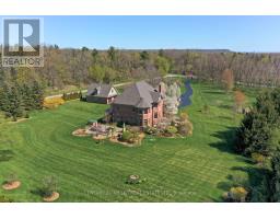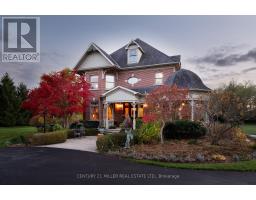 Tucked into a quiet fam neighbourhood in the quiet town of Kilbride lies a truly magnificent rural paradise, that's just a stones throw to city amenities! Imagine morning coffee on the wrap around covered front porch while you watch the kids ride bikes up the long winding driveway in perfect seclusion. No need for Muskoka when you've got this slice of heaven ! The Town of Kilbride proudly boasts one of the finest public schools in the entire Golden Horseshoe. Driving up to this stately brick Victorian style custom built home via iron gates, evokes a simpler time. This stunning two story home was designed by Bill Hicks architecture and the vision of the owners, and is a masterpiece with unique Victorian era appeal and modern amenities! The floor plan flows seamlessly from the formal front entrance with views through to the private backyard through to the heart of the home, the family room and kitchen with period appeal. A wonderful place for the family to gather and enjoy the open concept kitchen and family room with space for the whole family, while gazing out at the beautifully landscaped vistas that the backyard paradise presents with plenty of bird watching, nestled on 3.8 acres! Over 5,678 square feet of luxury living over three levels with no expense spared. Top of the line appliances, generous formal dining room, beautiful living room with fireplace, chef's kitchen open to family room. There's even a dedicated area to add an elevator for future use! Principal bedroom with spa atmosphere ensuite and two more bedrooms! Lower level with theatre room, gym, spa bathroom, music room offers something for whole family. Detached garage with room for three cars, custom car lift, workshop and 2nd level Artists' studio. Hot tub to enjoy in total seclusion! (id:61594)