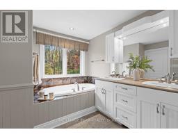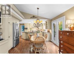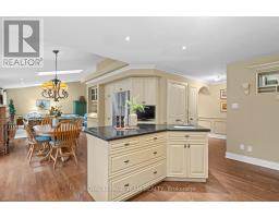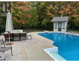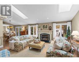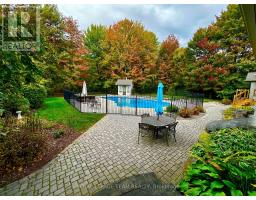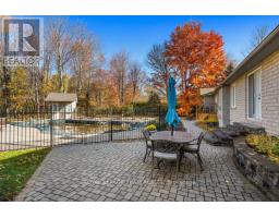 Set on 0.90 acres in a desirable Greely neighbourhood, this custom-built bungalow was originally the builder's own home, designed for comfort and functionality. Constructed with full brick and complemented by an interlocking stone walkway and landscaped gardens, it features four bedrooms, a flex room, four bathrooms, and a private home office. Bright and spacious, the home showcases vaulted ceilings, hardwood floors, two fireplaces, French doors, columns, arches, wainscoting, recessed lighting, and skylights. Flowing living spaces include a formal dining room, open-concept family and entertaining areas, and a stylish eat-in kitchen with floor-to-ceiling maple wood cabinetry, granite countertops, an island with prep sink and garbage disposal, and high-end stainless steel appliances. The primary bedroom is a serene retreat with backyard deck access, a walk-in closet, and a five-piece ensuite. The main level also includes two additional bedrooms, two bathrooms, and a laundry area / family entrance with interior access to the oversized two-car garage. The fully finished lower level offers versatile space for entertaining and recreation, including a bedroom, flex room, a full bathroom, and areas for a home theatre and games. Completing this remarkable property, the serene backyard, framed by mature trees, provides a private, year-round retreat with a patio, decks, and an inground pool perfect for relaxing or entertaining. (id:61594)