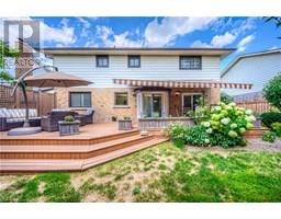 Beautiful original owner home. 4+1 bedrooms, 3 1/2 bathrooms. Lovingly maintained and updated. On one of south Burlington's most desireable courts where pride of home ownersip shines. Serene neighbourhood close to Go station, trains and buses, Burlington Mall, schools, parks, cycling and walking paths. Graciously landscaped from 4 car paving stone drive and front yard to lush, fenced backyard featuring a huge composite deck and large retractable awning. Quality is evident as soon as you walk through the recent high end door system with multi-point locking system into the inviting foyer. The main floor features a modern kitchen with quartz counter tops with sliding doors to the backyard, bright family room with a Napoleon gas fireplace and sliding doors to the backyard as well as spacious separate dining room and huge living room. Oversize two car garage with entry to large main floor laundry room/mud room. All rooms have gleaming hardwood floors including oak stairs to the second floor. The second-floor features four spacious bedrooms, including primary bedroom with walk-in closet and inviting ensuite bath. The lower level is tastefully finished with a huge rec room, 5th bedroom, 3 piece bathroom and tons of storage space, upgraded electric 2025. The entire home has been freshly painted quality paints and with current colour palette for your enjoyment. Don't miss out on this great home. All sizes approximate and irregular. All measurements approximate and irregular. (id:61594)
