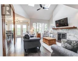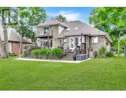 Nestled within the prestigious Westwood Estates, this magnificent custom-built executive home presents an exquisite blend of casual luxury and tranquility. Boasting an impressive grand foyer and sweeping staircase, the property invites you into a well-appointed center hall plan, radiating sophistication and charm. Vaulted ceilings and skylights cascade natural light throughout, while the ornate crown molding and fireplaces enrich the ambience of warmth and comfort. Entertaining is effortlessly accommodated in the combined living and dining area, graced by a wall fireplace that sets the scene for memorable gatherings. The heart of the home, an updated kitchen, comes equipped with built-in appliances, a breakfast bar, and lustrous granite countertops with a quaint breakfast room that opens out to a rear yard and deck, presenting a picturesque backdrop of gardens and serene water views. The family room, a spectacle of light with its floor-to-ceiling windows and an additional gas fireplace, offers a panoramic vista of the Quarry Ponds. Designed with distinction, the spacious main floor master suite is complete with a private ensuite and walk-in closet, ensuring a serene retreat for the discerning homeowner, while two private bedrooms on the second floor share a lovely 4-piece bathroom. The lower level extends the invitation with a wonderful and spacious guest suite (4th bedroom) with wall fireplace (electric) and 3-piece bath. A recreational/games room and a versatile finished work area are perfect for an art studio or workshop. Step out to a private rear patio from the lower level or bask in the tranquil surroundings from the front of the home, with a newer aggregate driveway and walkway enhancing the curb appeal. A 2-car garage, ample parking space and a gas generator cater to practical needs. Embrace a lifestyle where nature's beauty is your daily canvas in this exquisite home, designed for those who appreciate luxury and privacy in equal measure. (id:61594)
