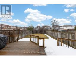 This fully finished home offers a thoughtful layout and neutral finishes throughout. The main level features a living room with a gas fireplace and an eat-in kitchen with patio doors leading to a large deck and a fully fenced backyard. This floor also includes a two-piece powder room, a spacious laundry room, and inside entry to the garage. The second story houses all three bedrooms, including a primary suite with a walk-in closet and an ensuite featuring both a soaker tub and a separate shower. A second full bathroom and a linen closet complete this level. The finished basement provides additional versatile space, perfect for an office and a cozy family room. Recent updates include roof shingles (2019) and a new furnace (2022), with new carpeting on the stairs as the only carpeted area in the home. Located close to all amenities, the property is just five minutes from Highway 400 and 20 minutes from Base Borden. This home is move-in ready and waiting for you. ** This is a linked property.** (id:61594)