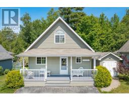 Top 5 Reasons You Will Love This Home: 1) Situated on a peaceful street in the sought-after Lakes of Wasaga Country Life, this 4-season chalet-style home delivers cozy living with the added security of a gated community, along with a full-width front porch inviting you to relax with your morning coffee or unwind as the sun sets and unlike many homes in the community, this one backs onto mature woods offering a rare sense of privacy with a tree-lined yard and direct access to a peaceful walking trail creating your own secluded escape 2) Designed with ease and comfort in mind, the open-concept layout features a welcoming gas fireplace, a main level bedroom, a 3-piece bathroom with a walk-in shower, and convenient main level laundry 3) The spacious, light-filled sunroom is a true bonus, presenting the perfect spot for a home office, second living area, or a quiet reading nook; step out onto the back deck and enjoy a private, tree-lined yard complete with nearby access to a peaceful walking trail 4) Upstairs, two large bedrooms and a handy 2-piece bathroom provide plenty of space for family or overnight visitors, creating a comfortable and private retreat for everyone 5) Enjoy all the perks of a vacation lifestyle without leaving home, including swimming pools, tennis courts, a splash pad, mini golf, basketball, and scenic trails; plus, you're just minutes from beaches, golf courses, and the excitement of Blue Mountain Village, making this your perfect all-season escape. 1,111 above grade sq.ft. (id:61594)