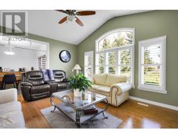 Spectacular Lambeth Court location with pie lot. Stunning curb appeal. This former Artisan model home comes fully finished. Gracious Open foyer welcomes you inside, Enjoy the 9ft ceilings throughout main, main floor laundry, custom kitchen with granite counters overlooking family room with gas fireplace, dining room, and eating area with terrace doors to 2-tiered deck with gazebo. Fully fenced yard, very private. 3 large bedrooms upstairs with primary bedroom with walk-in closet and private 5-piece ensuite bath, also Jack & Jill 4-piece bath between the 2 other bedrooms. Lower-level games room and rec-room, plus bedroom and 4-piece bath, wired for 5.1 surround sound. All standing cabinets included in basement hallway. Wrought iron railings, transom windows. (id:61594)