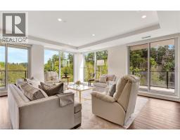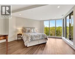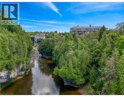 This luxurious 1,979 sqft, 2-bedroom plus den corner suite is in the most desired location in the building. An additional 500 sqft of outdoor living space and wrap-around windows give spectacular views in every season….. stunning water views of the Grand River, Gorgeous Elora Mill and the Scenic Tranquil views of the Elora Gorge. The main living area features a kitchen with floor-to-ceiling custom cabinetry, Upgraded Miele appliances, a large island with a waterfall countertop, and seating for four. The spacious dining room provides ample room for a large dining table perfect for hosting dinner parties or family dinners. The bright living room is open and easily accommodates larger furniture making this suite ideal for downsizers. The impressive primary suite boasts river views, two walk-in closets, and a five-piece ensuite bath with a double vanity, a gorgeous soaker tub with chandelier and a separate shower. This ideal layout also has a second wing with an additional bedroom and bathroom for guests, providing privacy. A spacious den with a door offers a versatile bonus room, perfect for a home office, guest room, or home theater. The Luxury Elora Mill Residences offer resort-style living, complete with a concierge, lobby coffee bar, resident lounge, private dining/party room, gym, yoga studio, outdoor terrace with fire pits, and an incredible outdoor pool with spectacular river views. Just steps from Elora’s charming downtown, you'll find top restaurants, shops, and cafes to explore, as well as quick access to the trails along the Elora Gorge in this amazing walking community. Two underground parking spots and a locker complete this ideal luxury home, offering low-maintenance, resort-style living. (id:61594)