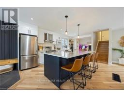 Stunning Back-Split in Desirable West-End Location. Welcome to this beautifully maintained and thoughtfully designed home, tucked away in a quiet family-friendly neighborhood close to schools, parks, and all amenities. Step inside to find a bright and inviting open-concept kitchen and living area, perfect for entertaining and everyday living. A few steps down, the cozy family room with a fireplace offers direct access to the backyard, making indoor-outdoor living effortless. At the front of the home, the spacious living and dining are filled with natural light from a large bay window overlooking the landscaped front gardens. Upstairs, the primary bedroom with semi-ensuite access is complemented by three additional well-sized bedrooms, ideal for a growing family. Outdoors, enjoy a private oasis featuring a large deck. The fully finished lower level provides even more versatile space, currently set up as a home theatre but offering endless possibilities: in-law suite, recreation room, office, or hobby area. With ample storage, a large utility room, and flexible-use spaces, this home adapts to your lifestyle needs. Meticulously cared for and beautifully decorated, this house showcases true pride of ownership! (id:61594)