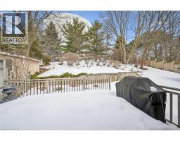 WELCOME TO YOUR NEW HOME! This bright and spacious end-unit townhouse with its private yard awaits you. Single car garage with a little extra depth for extra storage. The large foyer welcomes you into the bright main floor complete with garage access and a 2 piece bathroom. You'll instantly appreciate open concept of the kitchen/family room with moveable kitchen island. The hardwood floors have been kept in immaculate condition. The gas fireplace provides a beautiful focal point. Convenient sliders out to the deck and low maintenance private yard will impress you. Professionally landscaped. Upstairs are 3 spacious bedrooms and a large 4 piece bathroom. The spacious primary bedroom offers a 3 piece ensuite and walk-in closet. Downstairs is even more space with a finished rec room and additional 2 piece bathroom. This home offers plenty of room to grow into on a quiet court with tons of privacy. Just a short drive to the new hospital location, St Jacob's Farmer's Market, and across from Laurel Creek Conservation Area. Book your showing today! (id:61594)