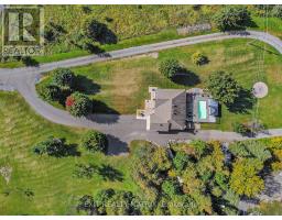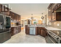 This exquisite bungalow offers the perfect blend of comfort and luxury. The open-concept main level showcases hardwood floors and large windows throughout, filling the space with natural light. A cozy living room, elegant dining area, and chef's kitchen with stainless steel appliances and a sit-at peninsula create a warm, inviting atmosphere. Two well-appointed bedrooms and a renovated 4-piece bathroom provide both style and function, while the primary bedroom features dual walk-in closets for a true retreat. A laundry room and oversized garage complete the main level. The fully finished lower level features an in-law suite with an open-concept layout, including a living area, dining space, and spacious kitchen. A second laundry room and 4-piece bathroom add convenience, while a generous bedroom with an oversized walk-in closet ensures comfort. Set on an expansive 5.21-acre property, the outdoor space is a true backyard oasis. Enjoy entertaining on the large deck with gazebo, relaxing by the in-ground pool, or gathering around the firepit with the added privacy of no rear neighbours. (id:61594)