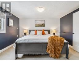 Don't be fooled by the address-this fully detached home is quietly tucked away from the main road on a family-friendly frontage road, offering three-car driveway parking plus ample street parking. With five bedrooms and three bathrooms (one on each level), this tastefully updated home checks every box. The main floor has been completely upgraded top to bottom and features a spacious living room, a custom kitchen, a convenient powder room, and an eat-in dining area with sliding doors leading to a brand-new deck (2025) and a large, open backyard retreat. Upstairs, you'll find a rare expanded primary bedroom with exceptional closet space and a private adjoining den/office or reading area. Two additional generous bedrooms and an updated four-piece bathroom complete the second floor. The finished basement offers new flooring and ceilings, another four-piece bathroom, a large bedroom with his-and-hers closets, and a cozy multi-purpose space ideal for a rec room, office, or guest area. Additional updates include siding (2019) and electrical panel (2023). This is a move-in-ready home in a surprisingly quiet setting-an opportunity not to be missed. (id:61594)