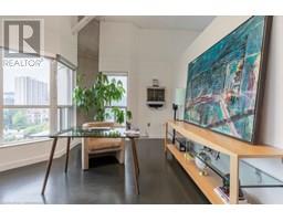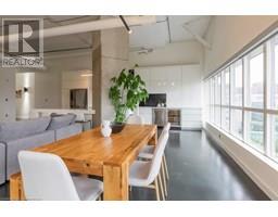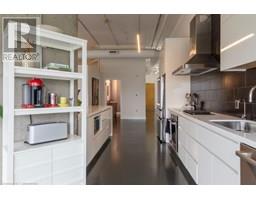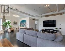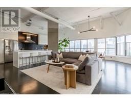 Once a legacy communications hub, this penthouse has been transformed into one of Hamilton’s premier industrial-style loft residences, redefining condo living. With nearly 1,700 square feet of living space, each detail has been designed to blend bold character, effortless style and elevated living. Step inside and be immediately struck by the sense of volume - soaring ceilings, exposed concrete floors, and a wall of windows that floods the space with natural light, offering panoramic views of the city skyline and Niagara escarpment. The open-concept floorplan balances industrial edge and refined comfort with a custom Barzotti kitchen that flows seamlessly into generous living and dining areas. There are two spacious bedrooms and two full baths, including a primary with ensuite and walk-in closet. At Core Lofts life extends beyond your front door - whether you’re taking in the views from the rooftop terrace or walking to your favorite restaurant or shop, this location puts you in the center of the action. Think Hess Village, Bayfront Park, or the new TD Coliseum which is set to be Hamilton’s hottest entertainment destination. It’s also a short walk to City Hall, and St. Joseph’s Hospital, with public transit at your doorstep. Extras include a Juliette balcony, underground parking for two cars, and storage locker. The building is well managed and offers a gym, bbq area, bike storage, and more! Fees are inclusive of heat and water. This isn’t just a condo - it’s a conversation starter, a sanctuary, and a front-row seat to the city. (id:61594)