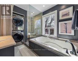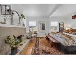 NOTE: OPEN HOUSE IS CANCELLED....Classic charming brick Leslieville character defines this large approx. 2500 sf, 2 1/2-storey semi-detached home including all finished levels. A wood-burning fireplace warms the living room, creating a cozy heart for gatherings. Bright living room flows to foyer, dining room and kitchen, with direct access to rear elevated deck and private yard oasis. Unique dual-bathroom layout features powder room with toilet and pedestal sink, adjacent to full bath with soaker tub, glass rain shower, vanity, and family-size front-load washer/dryer. Multiple bedrooms served by both main and back stairs. Spacious primary bedroom with wood-burning fireplace and walk-in dressing room. Standout third-floor loft with walk-out to expansive terrace (covered seating + open area, fully wired with electrical) - currently a family room but easily converts to bedroom or office. Finished basement with bedroom, recreation room, bathroom rough-in and expansive storage. Perfect blend of heritage charm and modern function on one of Leslieville's most desirable streets! Quiet, walkable, friendly - steps to Queen St. East amenities, transit and a new Ontario Line station mere blocks away. (id:61594)