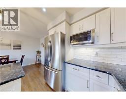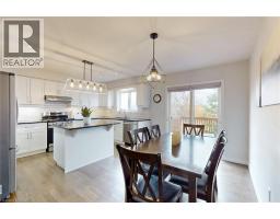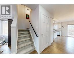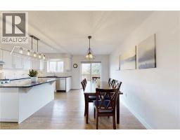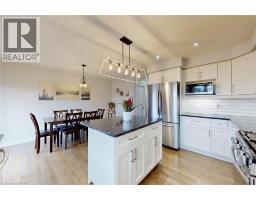 Executive condo townhouse in the modern Natura complex, offering move in ready living with clear pride of ownership. Built in 2016, this home features a spacious eat in kitchen with granite countertops, upgraded backsplash, stainless steel appliances, and a new 2025 gas stove. The dinette opens to a lovely deck overlooking the backyard. The bright living room includes hardwood floors and large windows, with a convenient powder room on the main level. Upstairs is a spacious, carpet-free primary bedroom with a walk in closet, massive windows, hardwood floors, and a 4 pc ensuite, plus two additional bedrooms and a 4 pc main bath. The finished walkout basement adds a bright recreation room with access to the fenced yard. Recent upgrades include zebra blinds (2025) and a new water heater (2025). Located on a quiet, family oriented street near parks, schools, grocery stores, LCBO, Victoria Road Rec Centre, East Guelph Medical Clinic, Guelph Lake, and transit routes 13, 17, and 18. (id:61594)