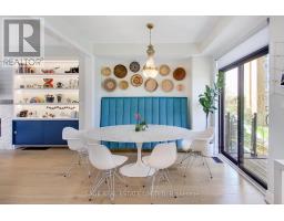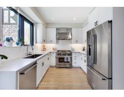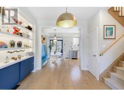 Sleek, stylish, and sun-filled, this seriously well-finished freehold townhouse in Toronto's coveted Richview neighbourhood delivers both polish and practicality. This home blends clean contemporary design with warm, character-rich details, including premium 7-inch-wide hand-scraped white oak floors, matching oak stairs, and a reclaimed century-old barn beam above the fireplace mantle that adds warmth and character. The main floor features 9-foot ceilings and an elegant living space with sleek built-in cabinetry, textured feature walls, and smart motorized blinds throughout the home. The kitchen is both functional and refined, complete with quartz counters with a waterfall edge, top-of-the-line appliances including a 6-burner gas stove, and a generous walk-in pantry. The primary bedroom offers a private ensuite. The ground-level garage, finished with epoxy resin floors, is currently set up as the ultimate home gym and offers flexibility beyond parking alone. High ceilings and a storage loft add function inside, while an additional surface parking space provides flexibility for a second vehicle or guests. Outdoor living is equally appealing, with a backyard, two balconies, and a rooftop terrace made for summer evenings. A modern HVAC system and wastewater heat recovery system enhance energy efficiency and future-ready appeal. Set in a family-friendly pocket surrounded by parks and walking trails, just steps from Richview and Silver Creek parks and minutes from the airport and major highways, this home pairs upscale finishes with everyday functionality. The turnkey freehold townhouse you've been looking for, no maintenance fees - simply move in and enjoy. (id:61594)