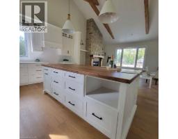 For more info on this property, please click the Brochure button. Handcrafted bungalow in the quiet village of Courtland, Ontario. This spacious, open-concept home is accented with timberframe details and hardwood floors. The kitchen features solid-wood cabinetry and a butcher-block island top, while the dining area looks out to the back covered porch through a generous 8-foot sliding glass patio door. Along one wall, a large coffee-bar cabinet - complete with its own sink—sits beside a sliding barn door that conceals a fully shelved pantry. The living room is large and open, with a picture window to the porch and a fireplace. The roomy main bedroom includes a spacious walk-in closet, and the 5-piece ensuite is fitted with an extra-large tiled shower, a soaker tub, and a double-sink vanity. There is a separate staircase from the two-car garage leading directly into the unfinished basement. The basement is fully framed and wired, ready to be boarded and finished for family, guests, or even a second separate living quarter. Off the rec room, a 5-foot patio door opens from the walkout basement to a quiet haven of shady trees and green grass. The spacious side yard allows for all kinds of activities. Outside, a double-wide gravel driveway leads to the two-car garage with a timber-framed awning and automatic door openers. To the right, a solid concrete sidewalk runs beside a beautifully timber-framed front porch. There’s lots more to see - don't miss out. Property not yet assessed. (id:61594)